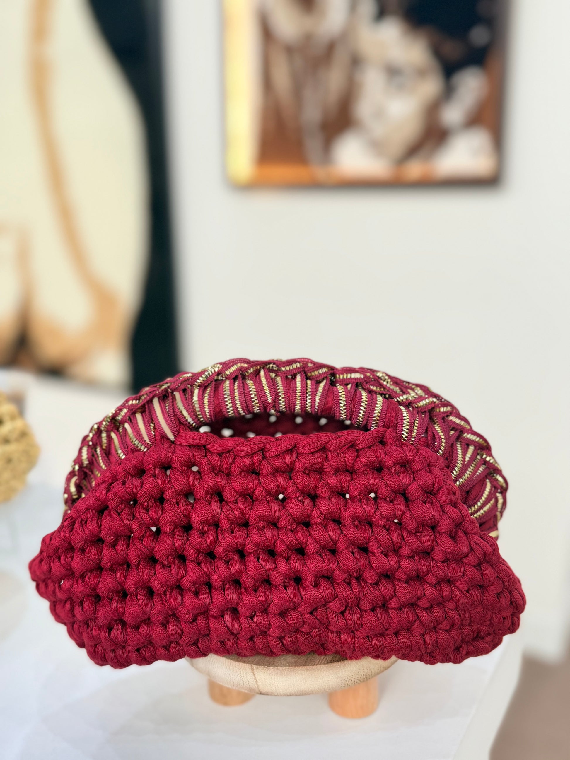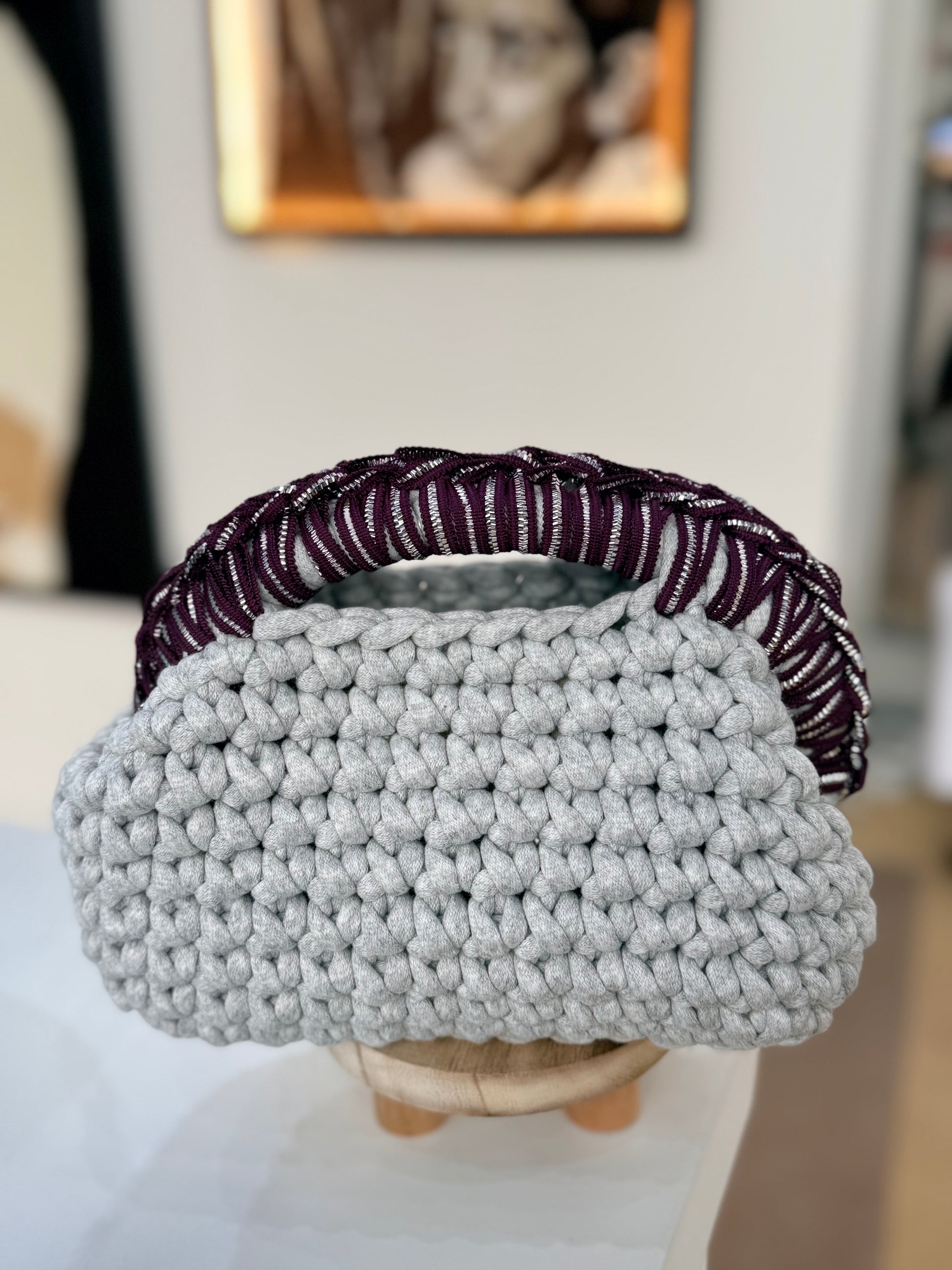 قطعة كروشيه أنيقة مصنوعة يدويًا بعناية من خيط سميك يعطيها ثبات وشكل فخم. تتميّز بمسكة التلي المميّزة اللي تضيف لمسة تراثية راقية بطابع عصري يناسب كل الإطلالات