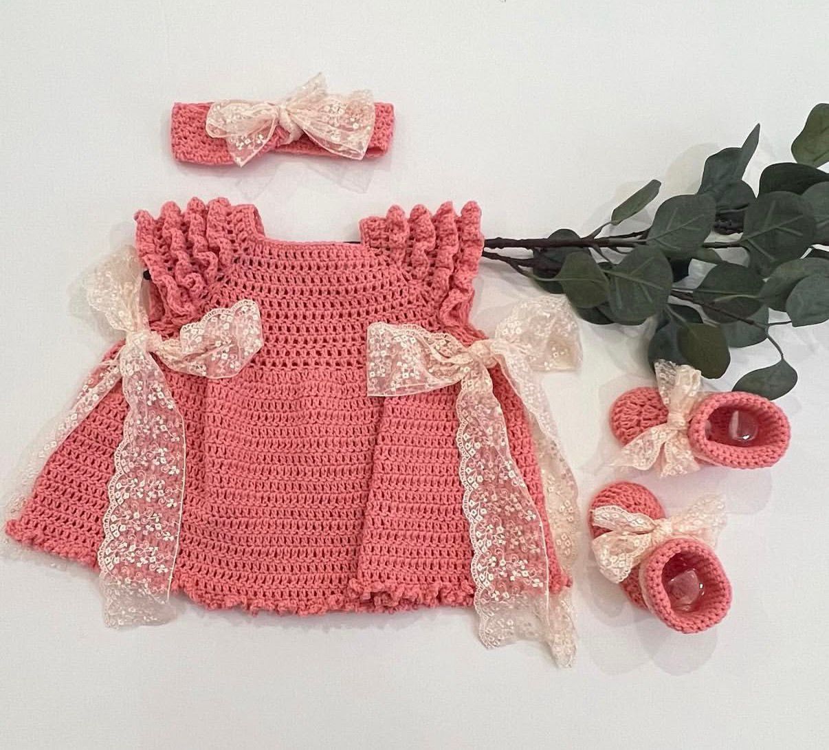 طقم مواليد كروشيه وردي أنيق